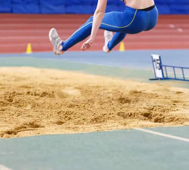 Sprungsand von Pleinfelder Quarzsand ist speziell aufbereitet: Er dämpft zuverlässig, bleibt locker und sauber, ist rieselfähig und ideal für Sportanlagen, Schulhöfe und Freizeitflächen – für sichere Landungen bei jedem Sprung.