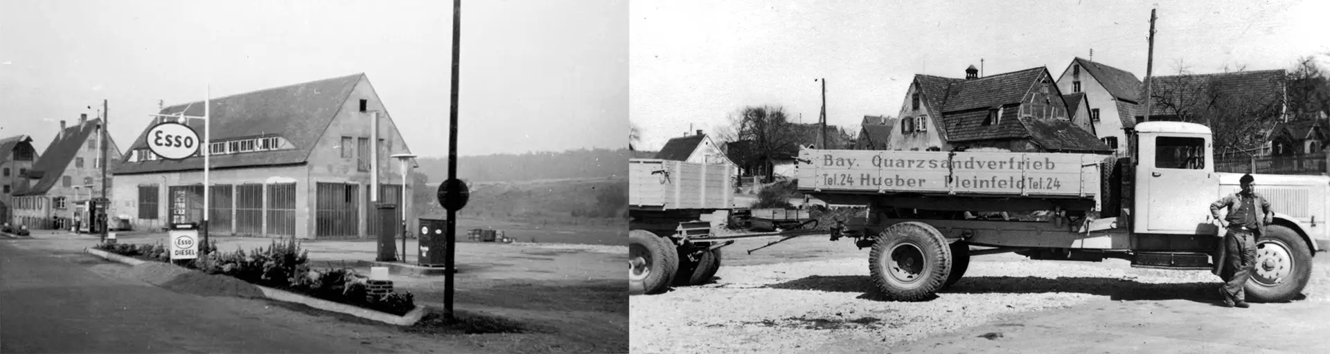 Das Gastwirtsehepaar Walburga und Theodor Hueber beginnt mit dem Abbau der reichlichen Sandvorkommen in der Pleinfelder Umgebung. Abgebaut wird am Anfang von Hand und der Sand wird mit Pferdefuhrwerken transportiert.